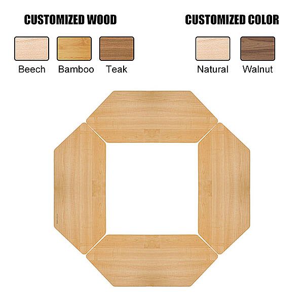 これはステンレス鋼フレームおよびコネクターが付いている八角形の木製の折りたたみ式テーブルである場合もあり私達にパテントがある。 このテーブルは長く、正方形のテーブルを含むさまざまな方法で、組み立てることができる;その上に、正方形のテーブルは2つのセットを一緒に接続でき また、我々はそれを保持し、それを守るためにスポンジで一つのオックスフォードキャリーバッグを持っています。