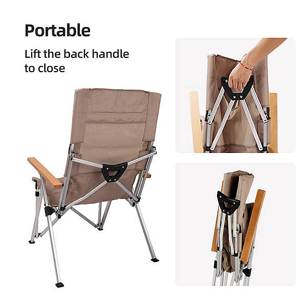 バックハンドル付きアルミキャンプ折りたたみ椅子 |