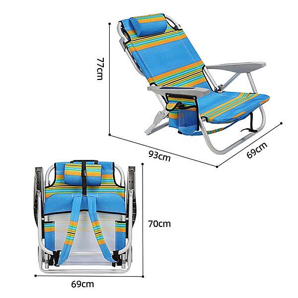 このビーチチェアは多用途で、あらゆるアウトドアシーンに活躍します。通気性に優れた600Dオックスフォードポリエステル製で、速乾性と快適性を確保し、湿気や熱のこもりを防ぎます。フレームは軽量ながらも耐久性の高いアルミニウム(グレード13)製で、重量を感じさせない堅牢な構造を実現しています。