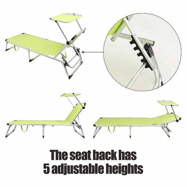 - 5段階の高さ調節:背もたれは必要に応じて5段階に調節でき、サンシェードアタッチメントが付属しています。